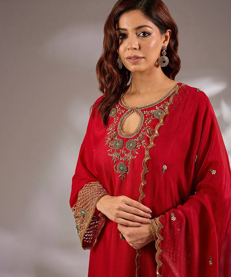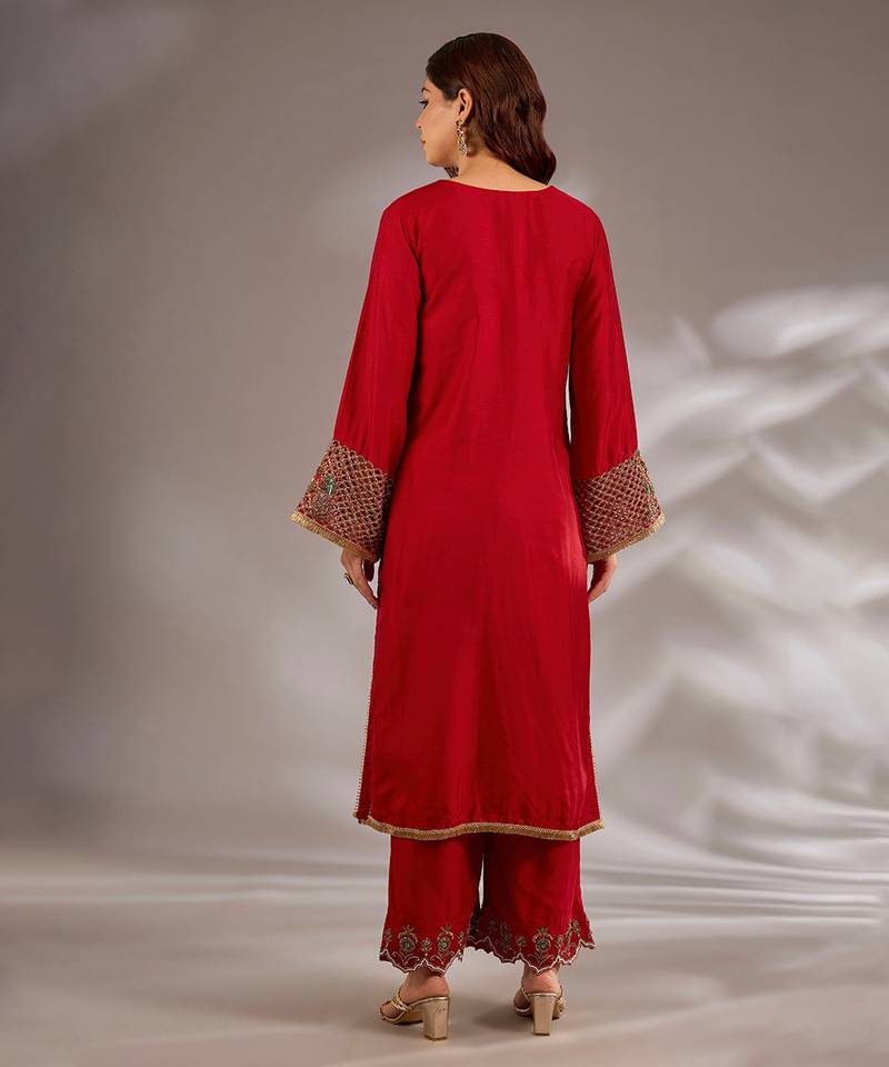 | Product Name | Red Embroidered Silk Kurta Set | |