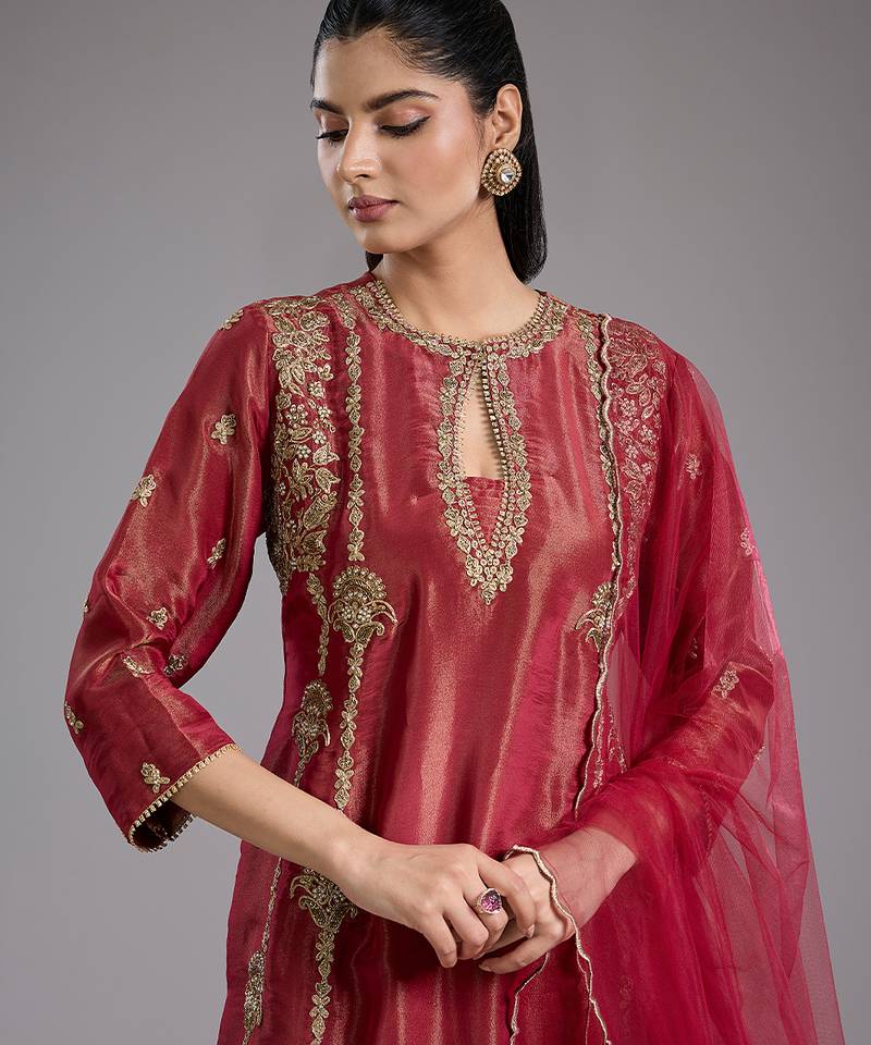| Product Name | Red Embroidered Tissue Kurta Set | |