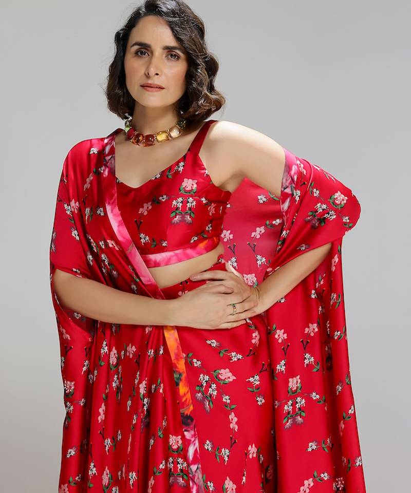| Product Name | Red Printed Georgette Co Ord Set With Cape | |