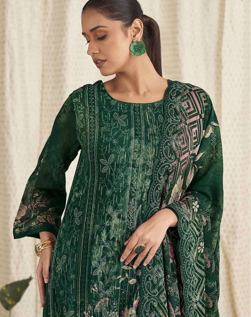 Green georgette digital printed dress material unstitched