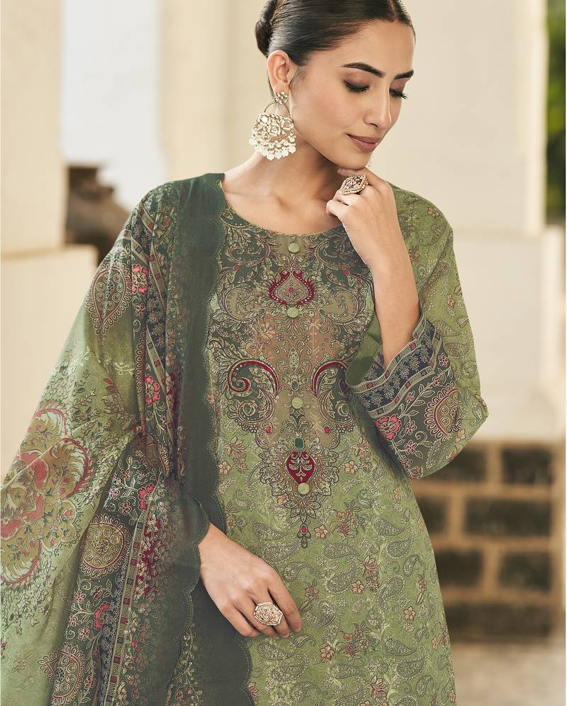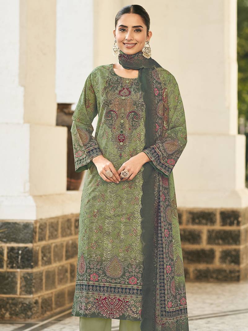 Green lawn cotton digital printed dress material unstitched