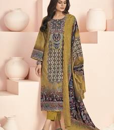 Stylee lifestyle mustard yellow lawn cotton digital printed dress material unstitched