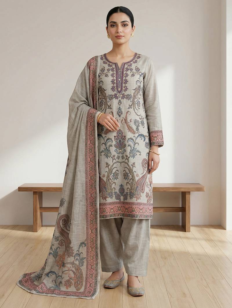 | Product Description | Allover Contrast Paisly Digital Print With Jari Work & Digital Printed Dupatta |