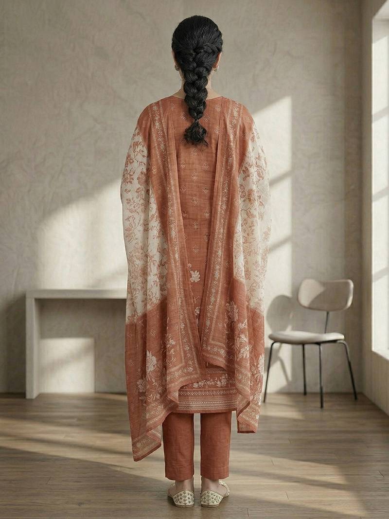Dupatta : Color- Orange / Fabric- Linen
