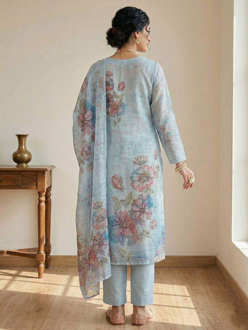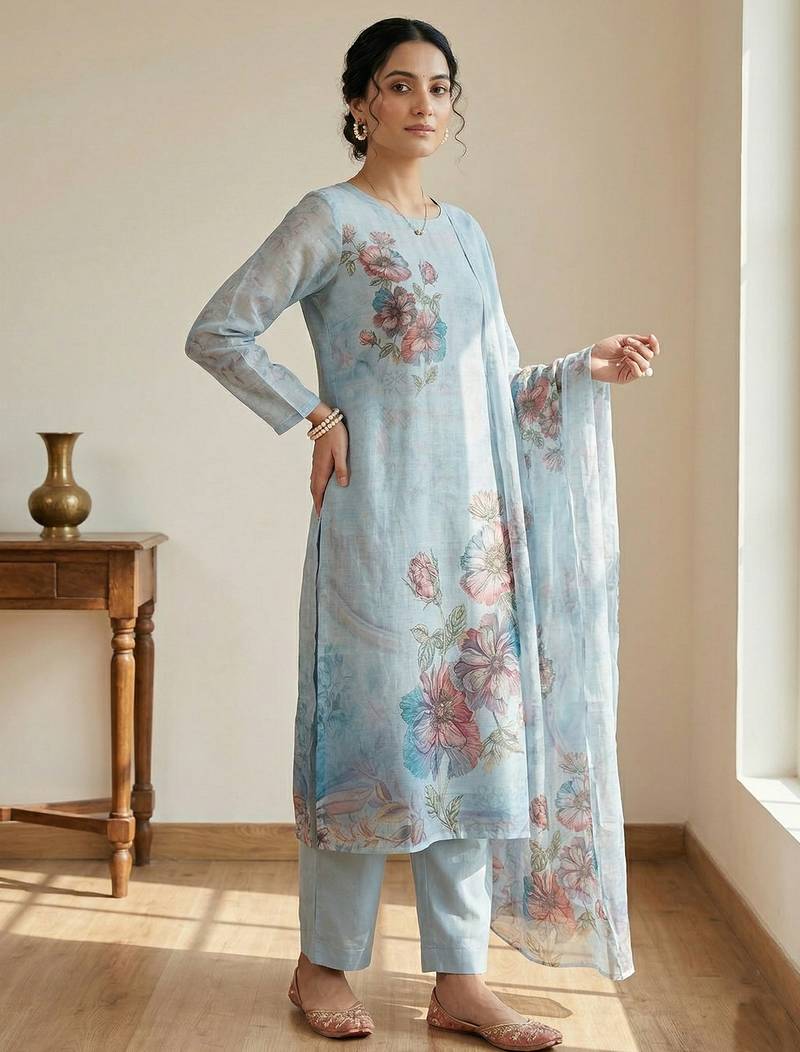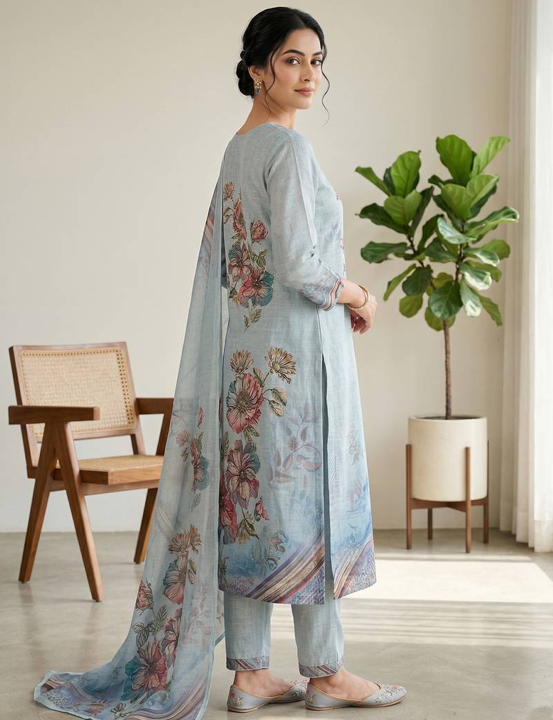 | Product Name | Stylee Lifestyle Sky Blue Linen Digital Printed Dress Material | |