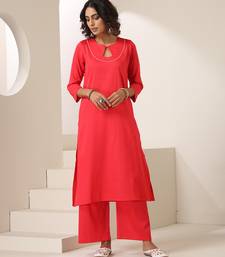Red plain cotton kurta set