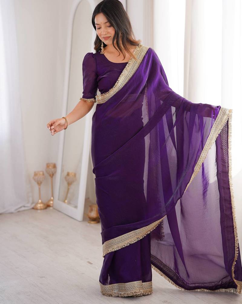 | Product Name | Blue Color Sequins Lace Border Satin Silk Saree | |