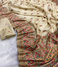 Cream color premium pashmina silk saree