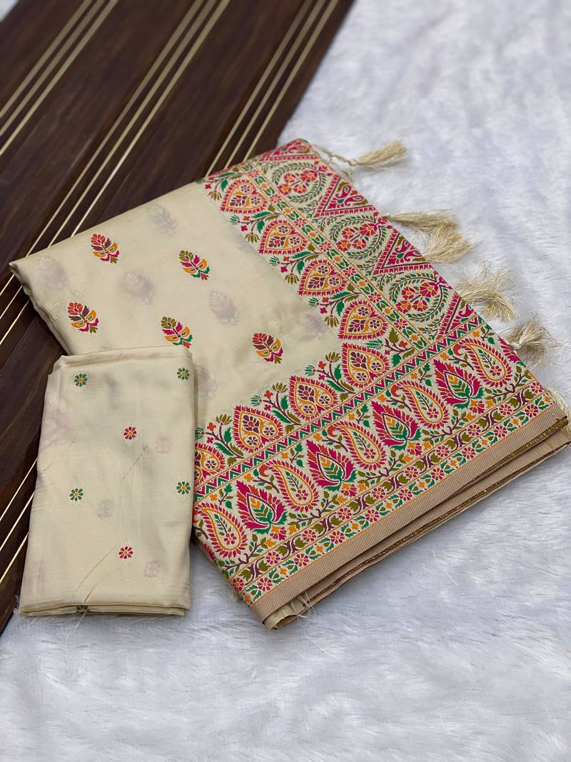 | Product Name | Cream Color Premium Pashmina Silk Saree | |