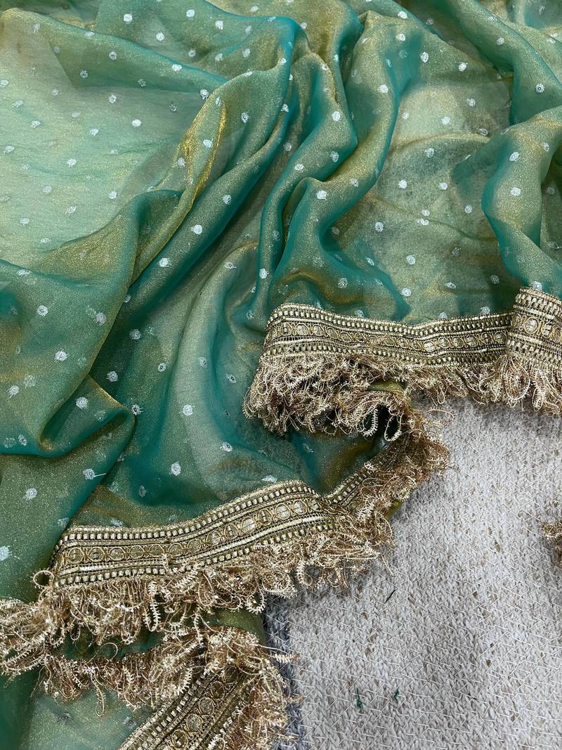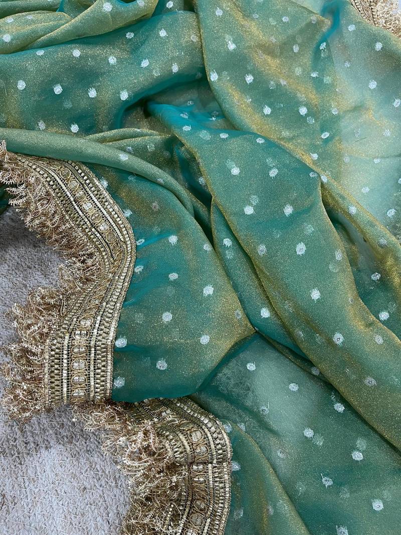 | Product Name | Emerald Color Zari Woven And Work Jacquard Butti Silk Saree | |