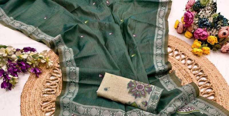 | Product Name | Green Color Meenakari & Zari Weawing Small Border Muga Cotton Saree | |