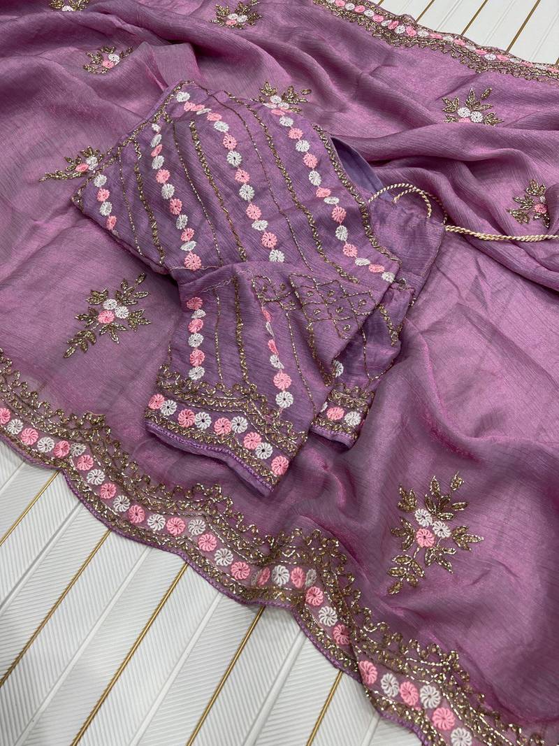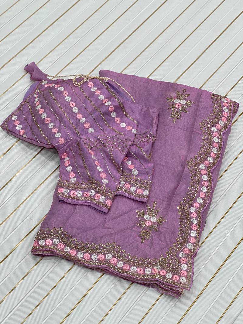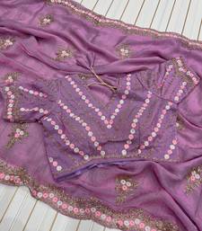Product Name Lavender Color Partywear Embroidered Chiffon Saree