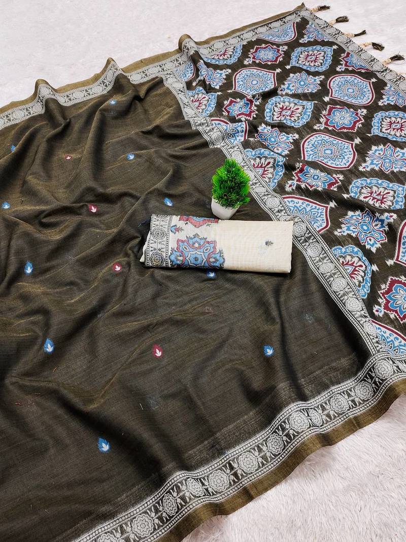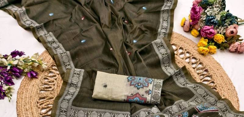 | • | Saree | : | Color- Mehendi / Fabric- Cotton |