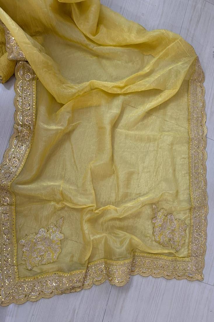 | Product Name | Yellow Color Wedding Wear Gold Silk Crush Saree | |