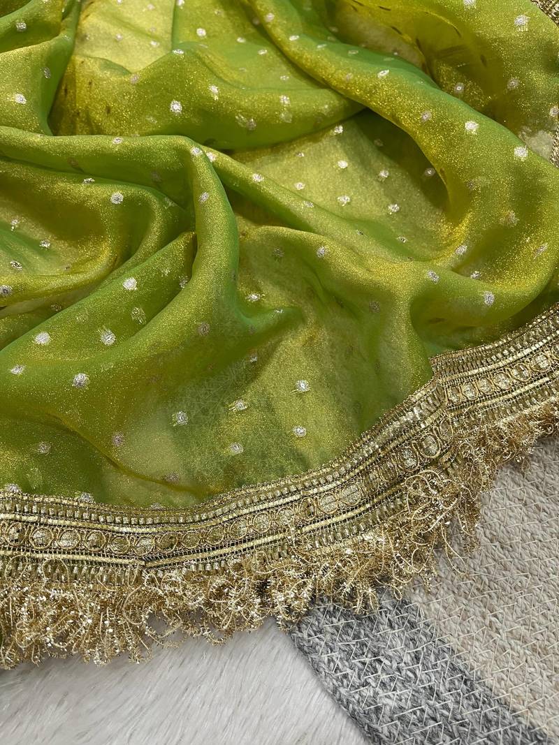| Product Name | Olive Color Zari Woven And Work Jacquard Butti Silk Saree | |