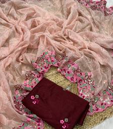 Pink color party wear soft organza saree