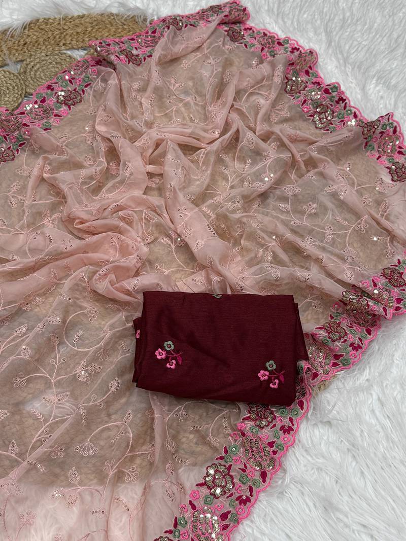 | Product Name | Pink Color Party Wear Soft Organza Saree | |