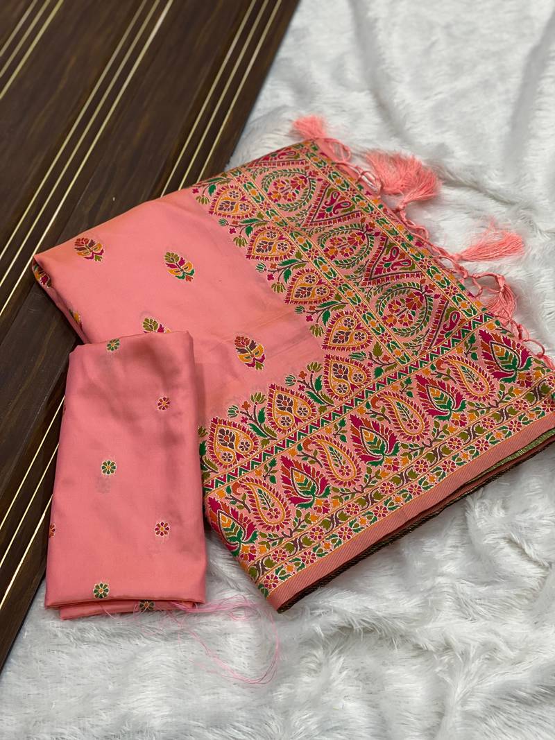 Pink color premium pashmina silk saree