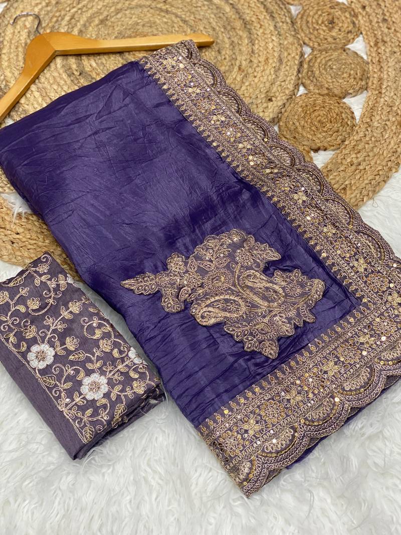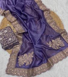 | Product Name | Purple Color Embroidered Glass Tissue Fabric Saree | |