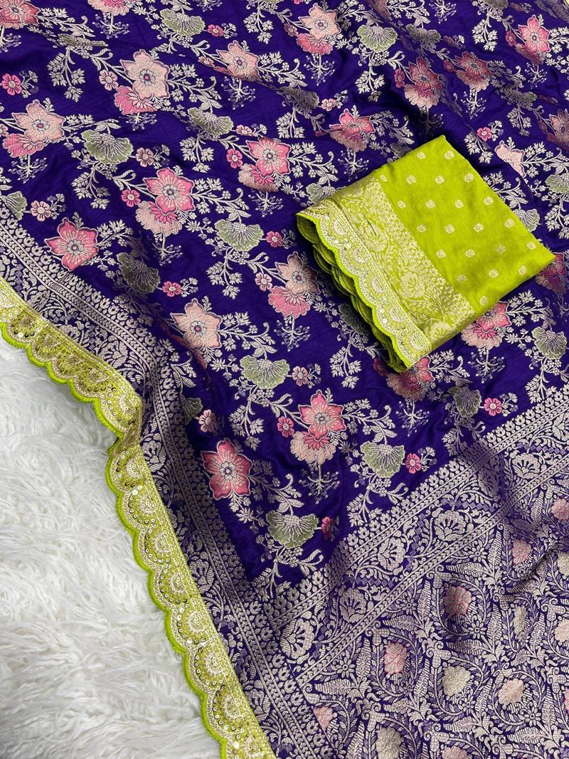 | Product Name | Purple Color Indian Wedding Dola S Ilk Blnd Saree Collection | |