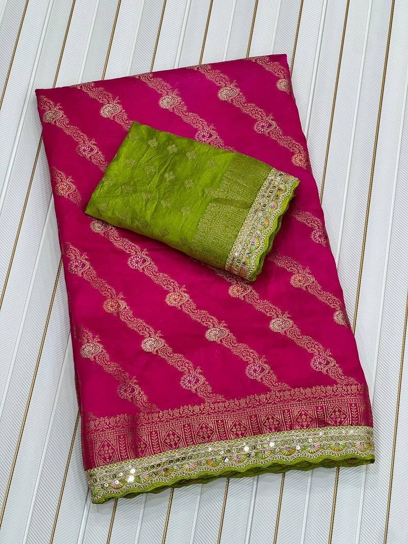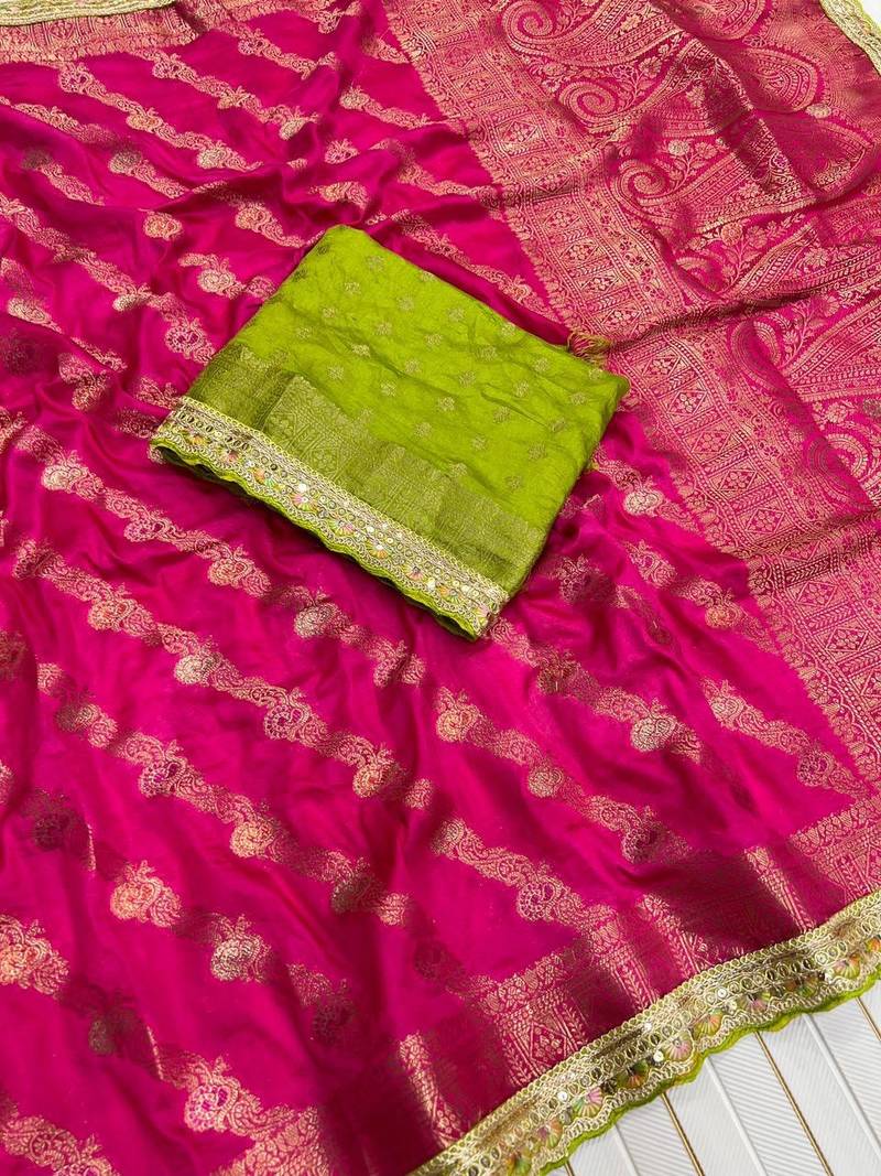 | Product Name | Rani Pink Color Designer Dola S Ilk Blnd Zari Weaving Saree | |
