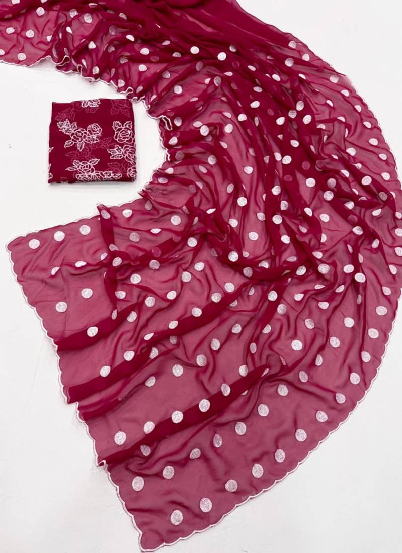 Rani pink colour soft georgette polka dot saree