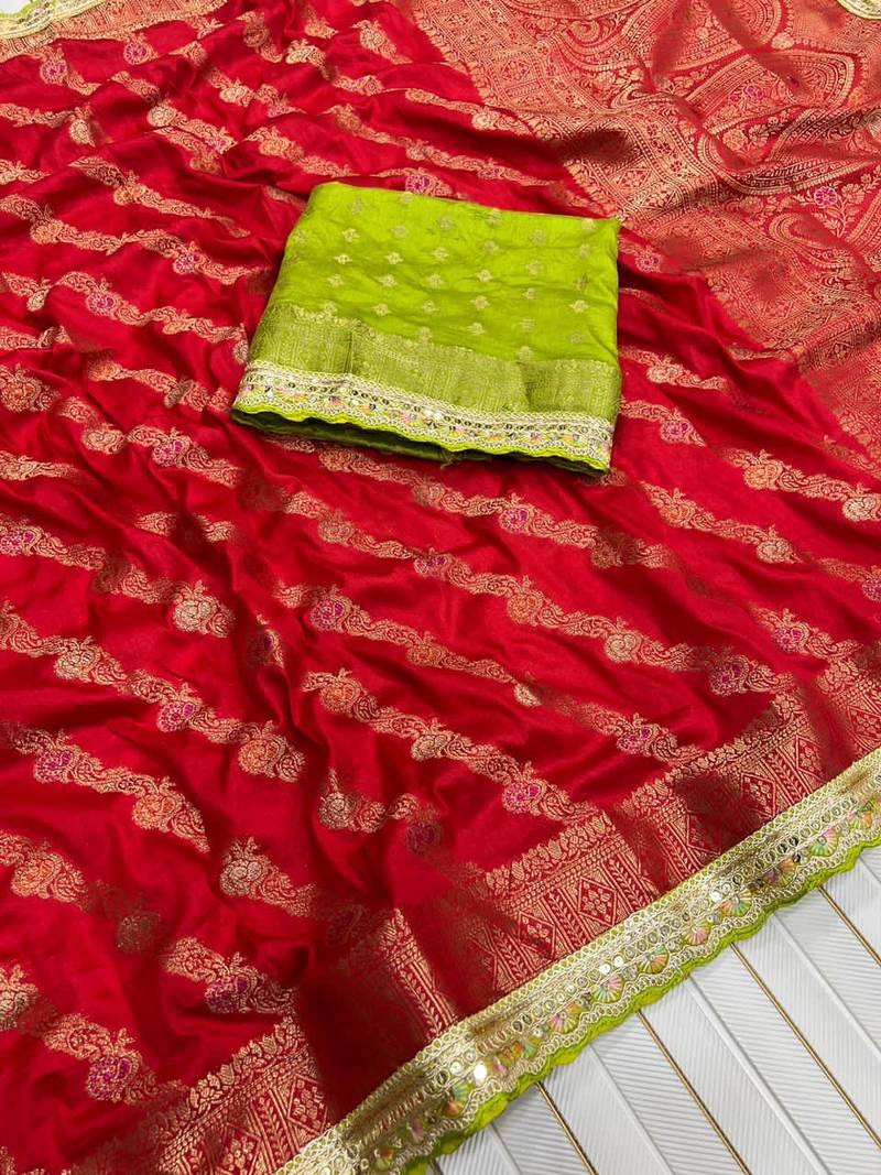 Red color designer dola silk blnd zari weaving saree