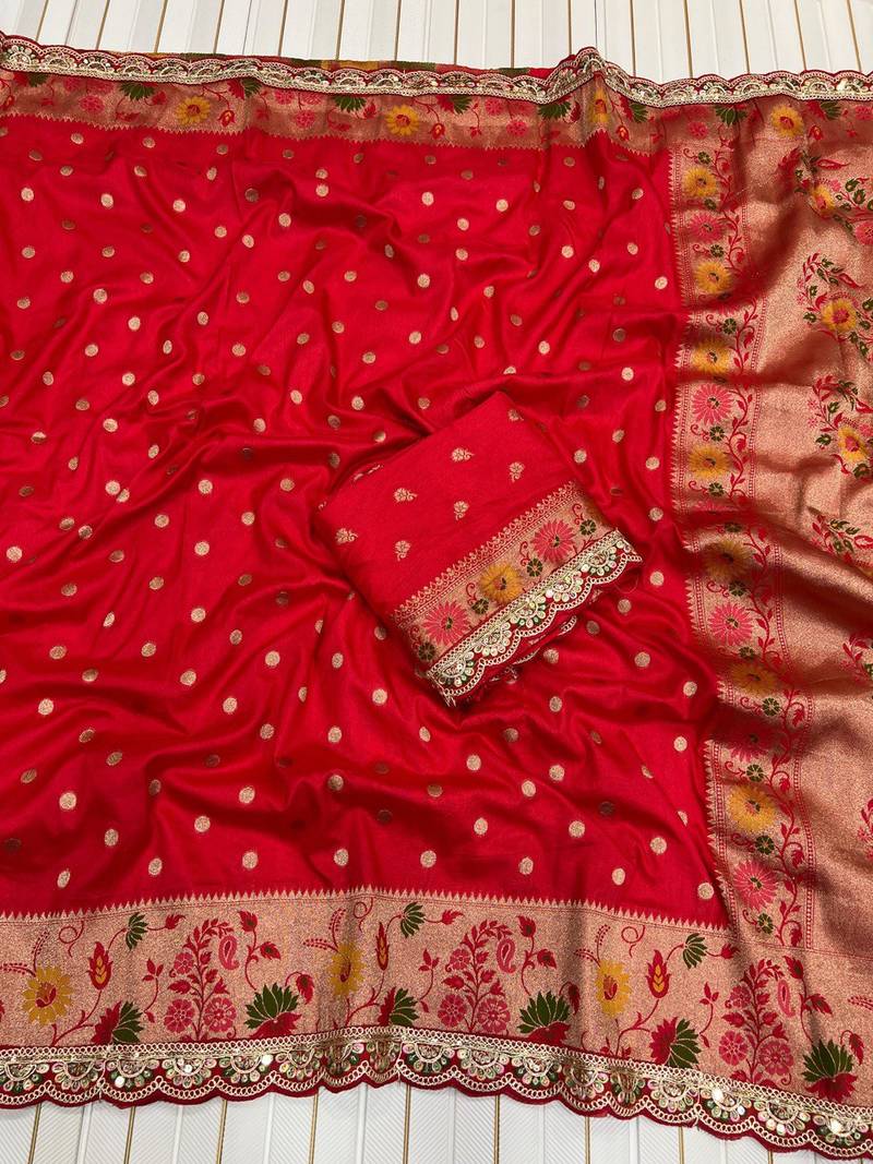 | Product Name | Red Color Flowing Pure Dola Silk Saree | |