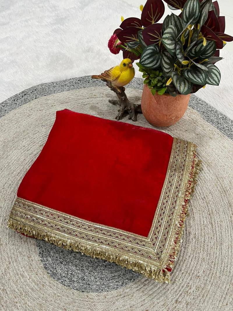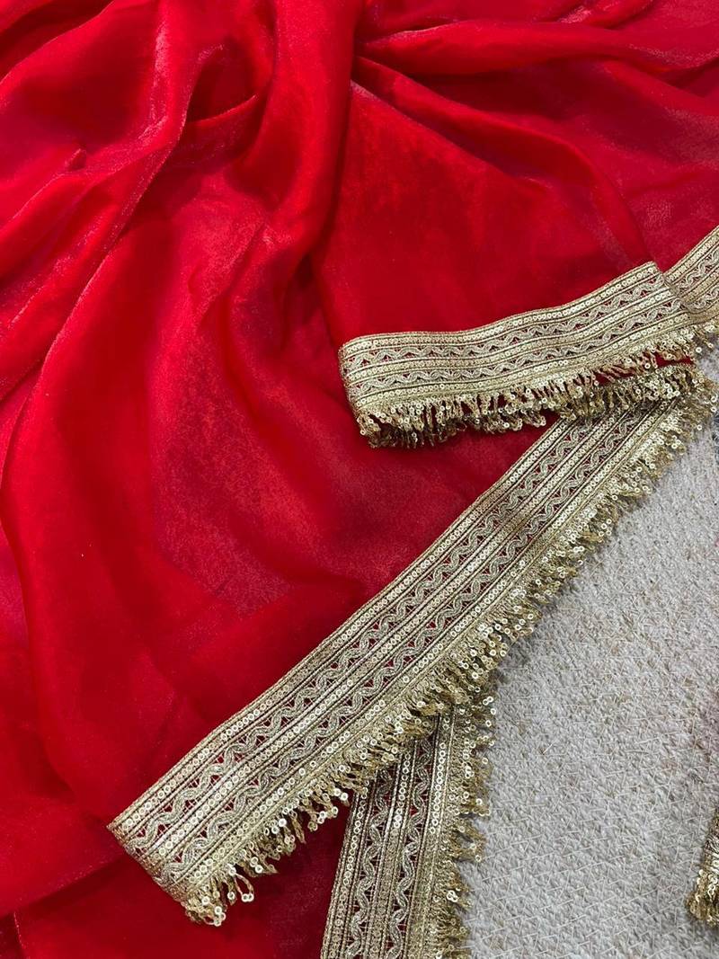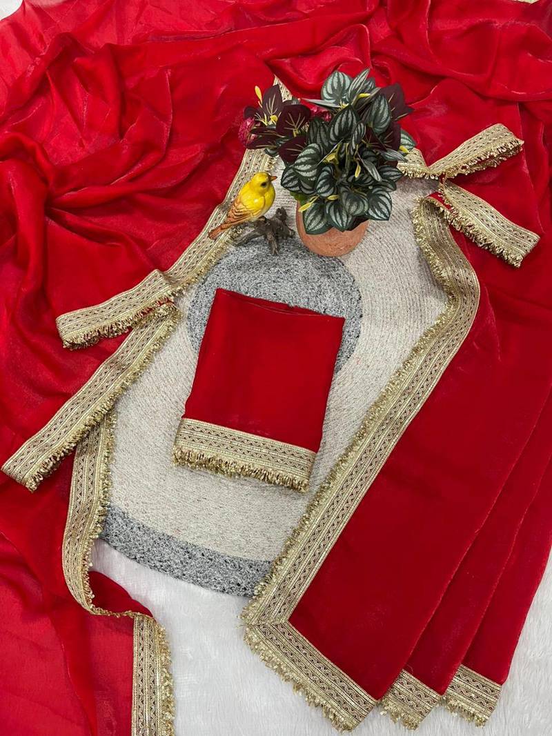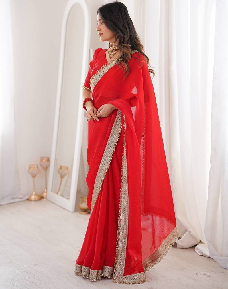 | Product Name | Red Color Sequins Lace Border Work Satin Silk Saree | |