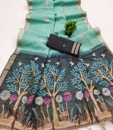 | • | Saree | : | Color- Teal / Fabric- Cotton |