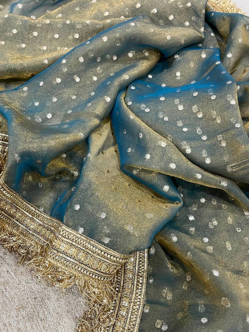 | Product Name | Teal Color Zari Woven And Work Jacquard Butti Silk Saree | |