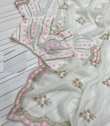 White color partywear embroidered chiffon saree