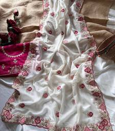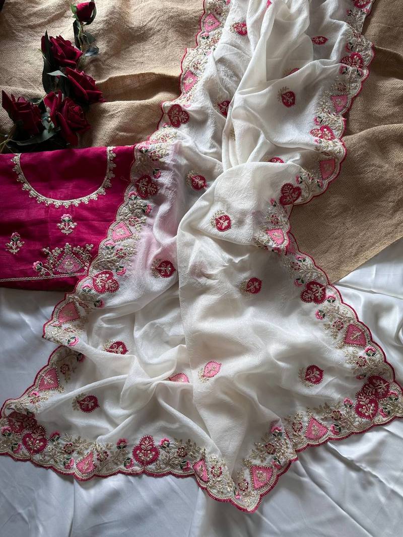 | Product Name | White Color Zari Border With Zarkhan Work Georegett Saree | |
