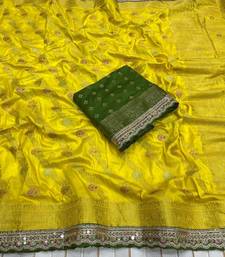 Yellow color designer dola silk blnd zari weaving saree
