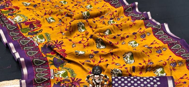 | Product Name | Yellow Mul Cotton Kalamkari Print Saree With Traditional Border | |