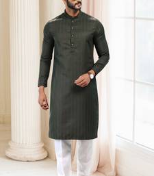 Green woven silk kurta-pajama