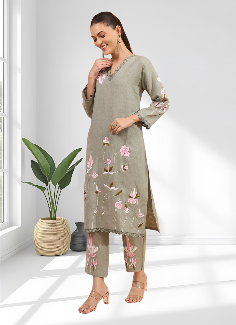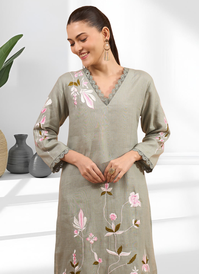 | Product Name | Pista Green Linen Long Kurta With Pant For Women's | |