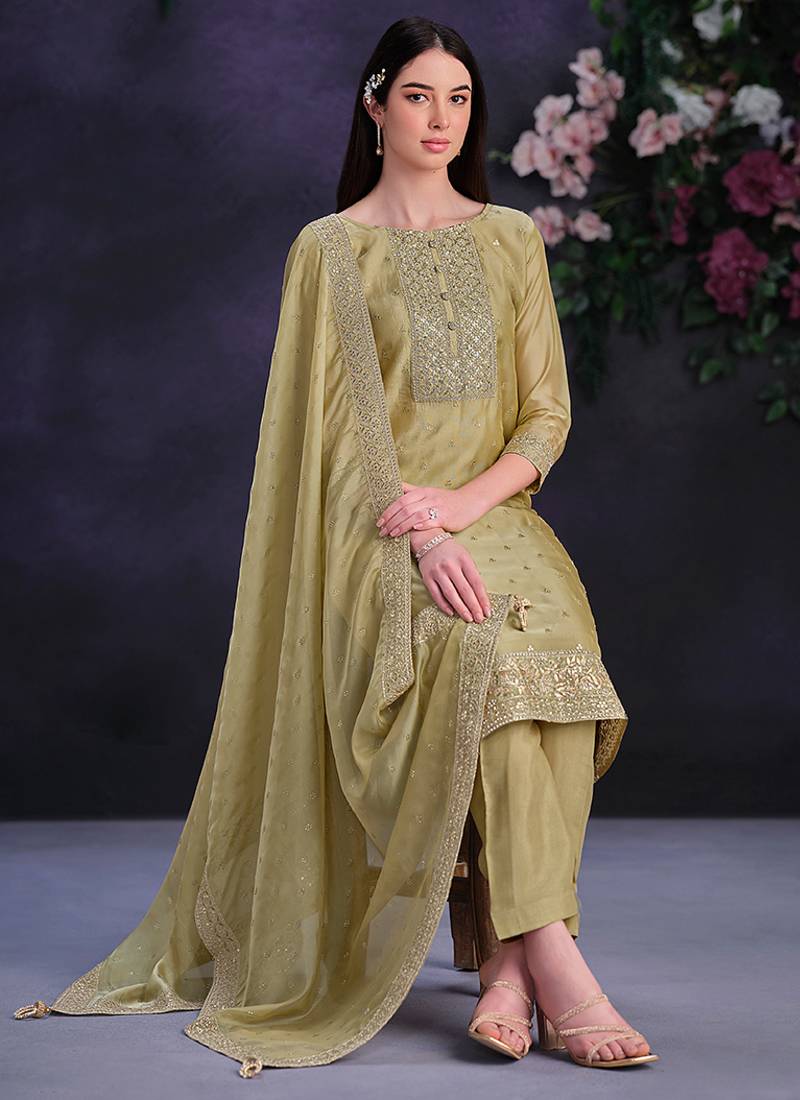 | Product Name | Beige Embroidered & Jarkan Shimmer Organza Straight Cut Suits Salwar Kameez | |