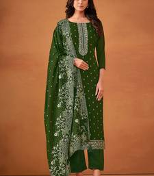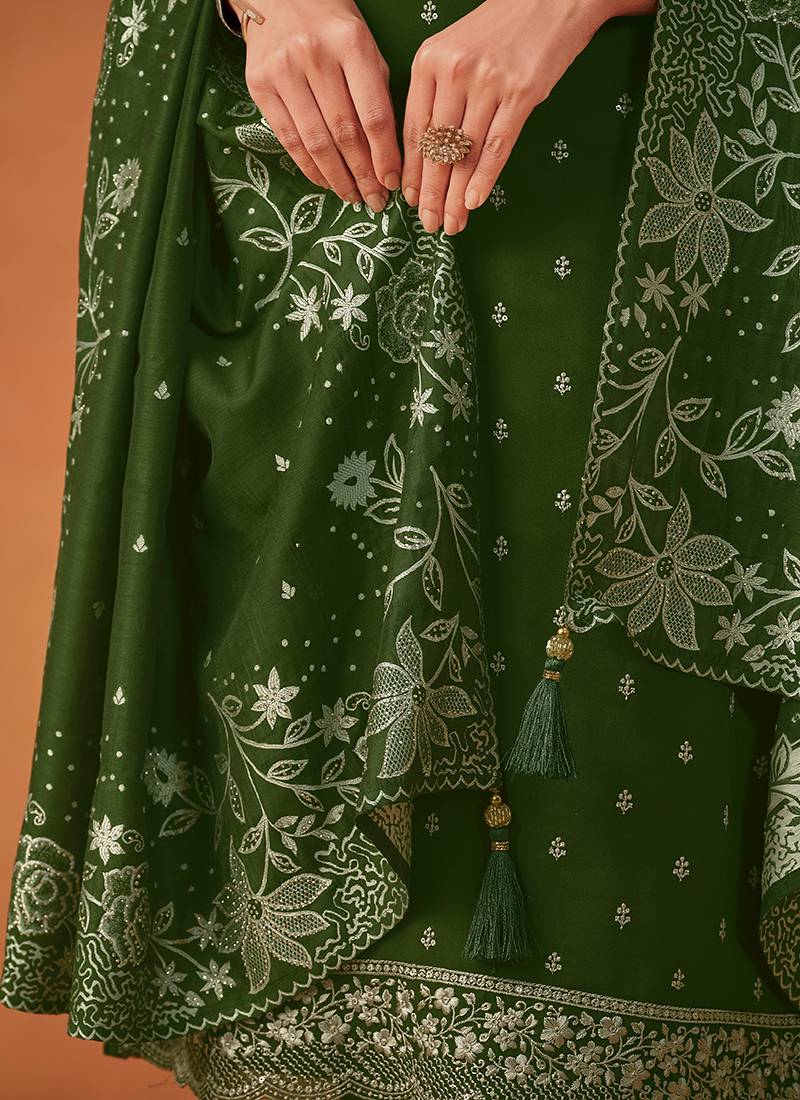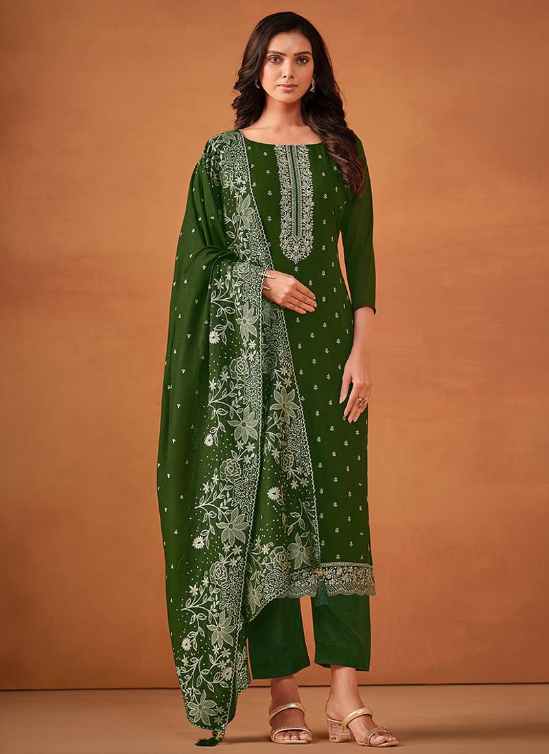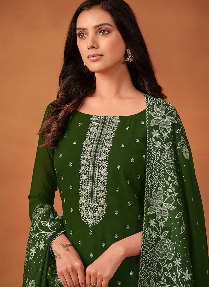 Green embroidered georgette straight cut eid wear salwar kameez semi stitched