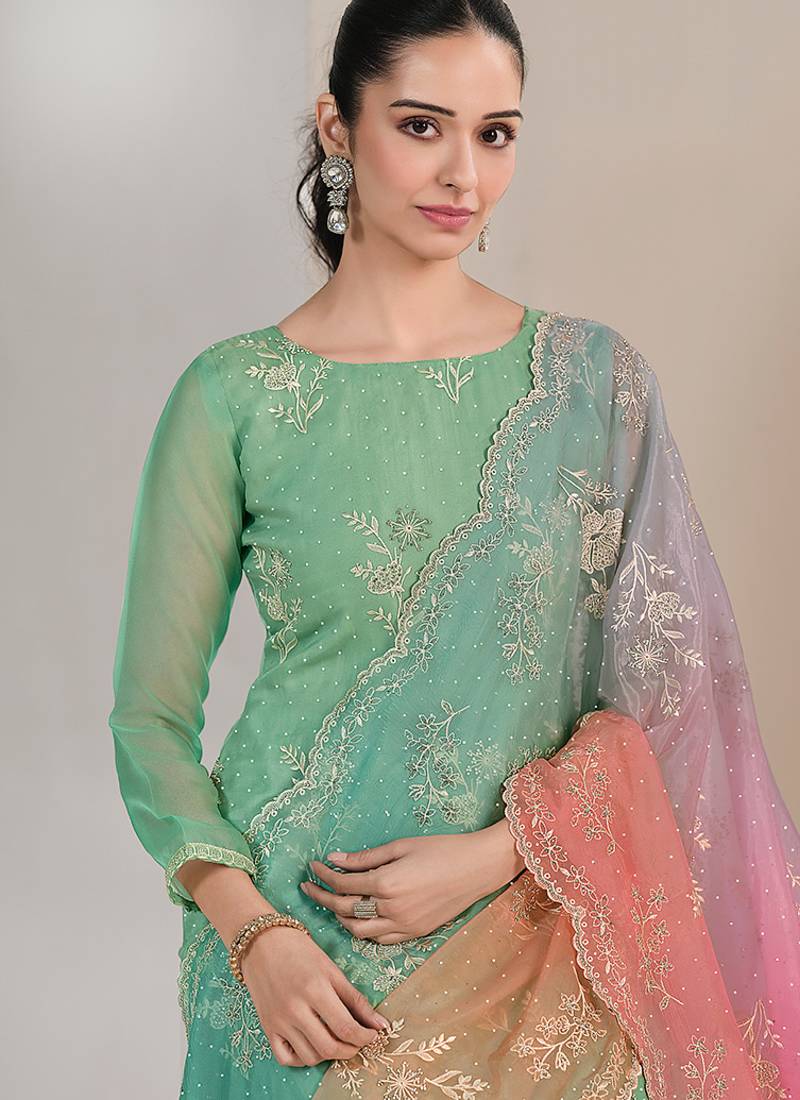 | Product Name | Green Embroidered & Jarkan Work Organza Straight Cut Suits | |