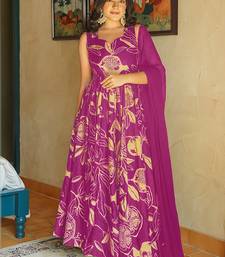 Magenta heavy digital printed rayon gown style with dupatta stitched