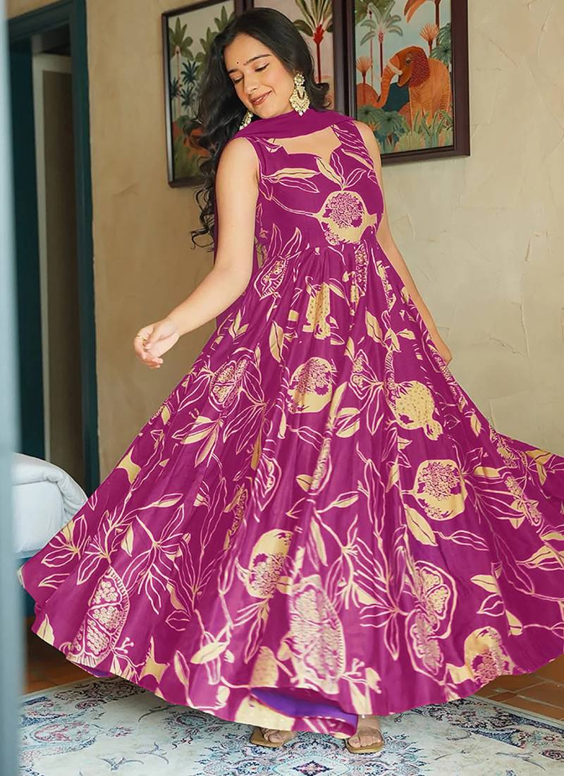 | Product Name | Magenta Heavy Digital Printed Rayon Gown Style With Dupatta | |