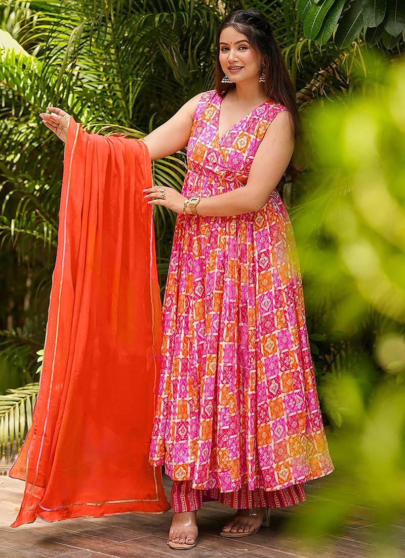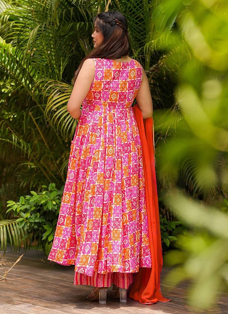 Multicolor heavy digital printed maslin anarkali palazzo style stitched