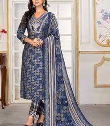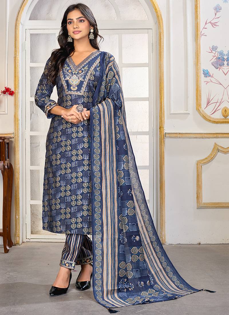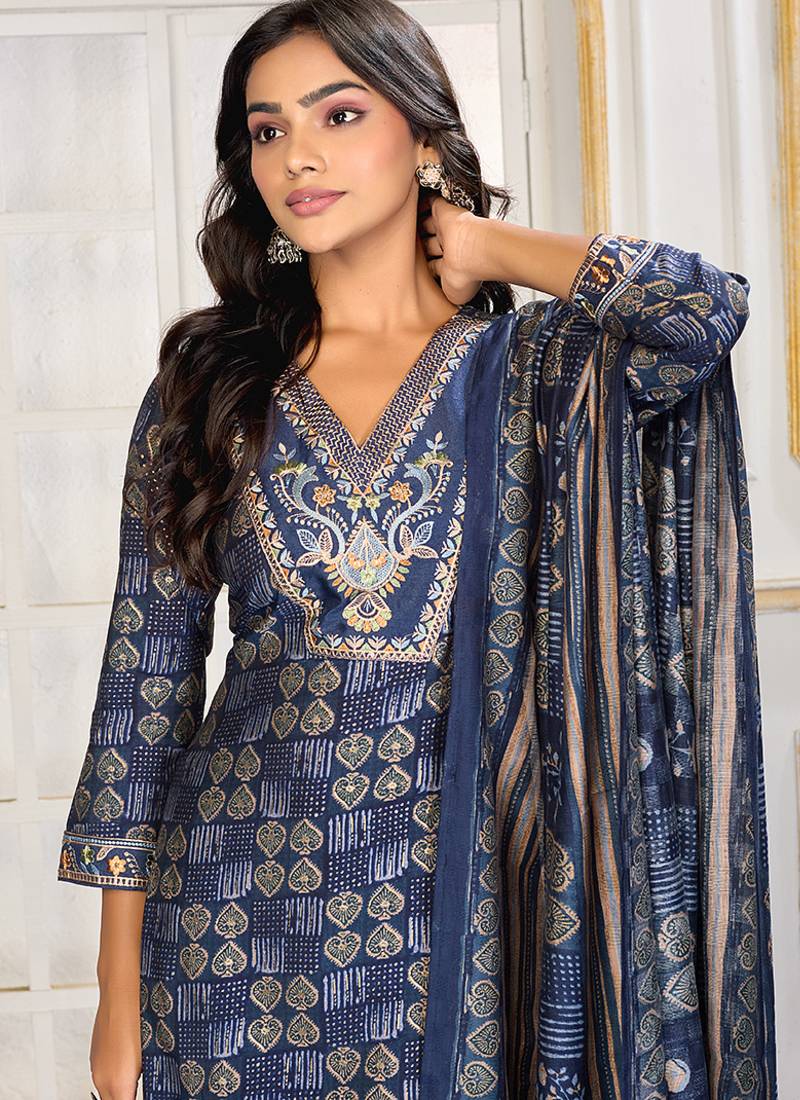 | Product Name | Navy Blue Digital Print With Embroidery Chanderi Salwar Kameez With Two Pocket | |
