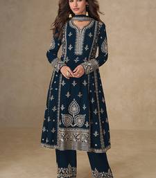 | Product Name | Navy Blue Embroidery & Sequence Work Back Side Full Work Chinon Palazzo Suit Festive Wear | |