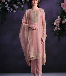 Pink embroidered & jarkan shimmer organza straight cut party wear salwar kameez semi stitched