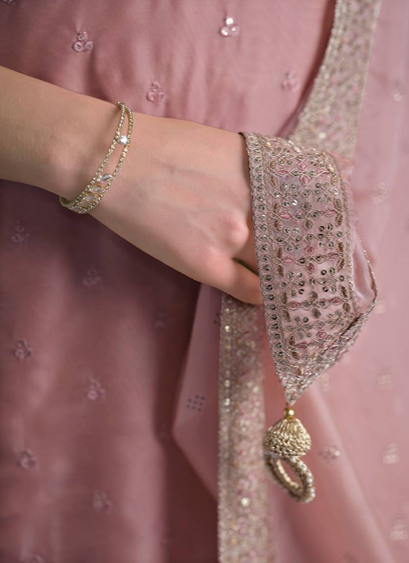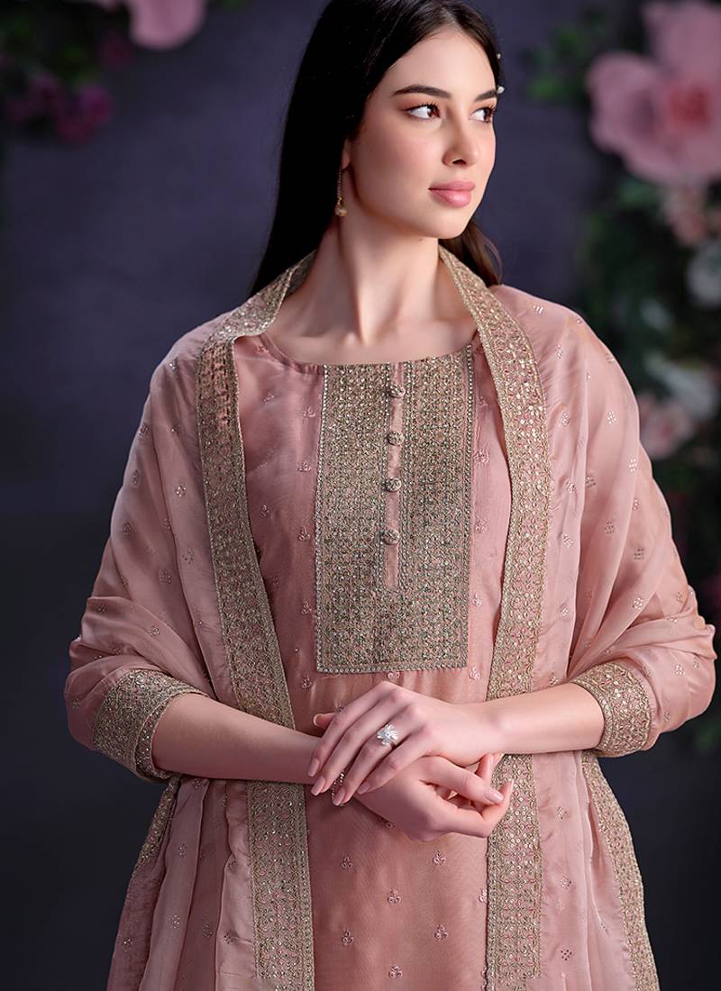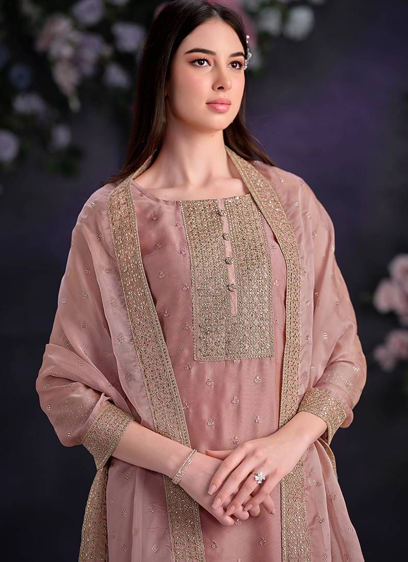 Product Name Pink Embroidered & Jarkan Shimmer Organza Straight Cut Party Wear Salwar Kameez