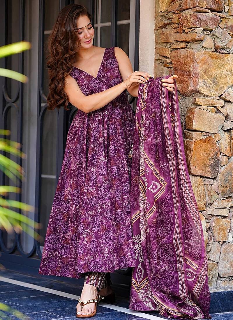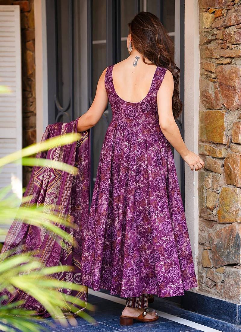 | Product Name | Purple Heavy Digital Printed Maslin Anarkali Style | |