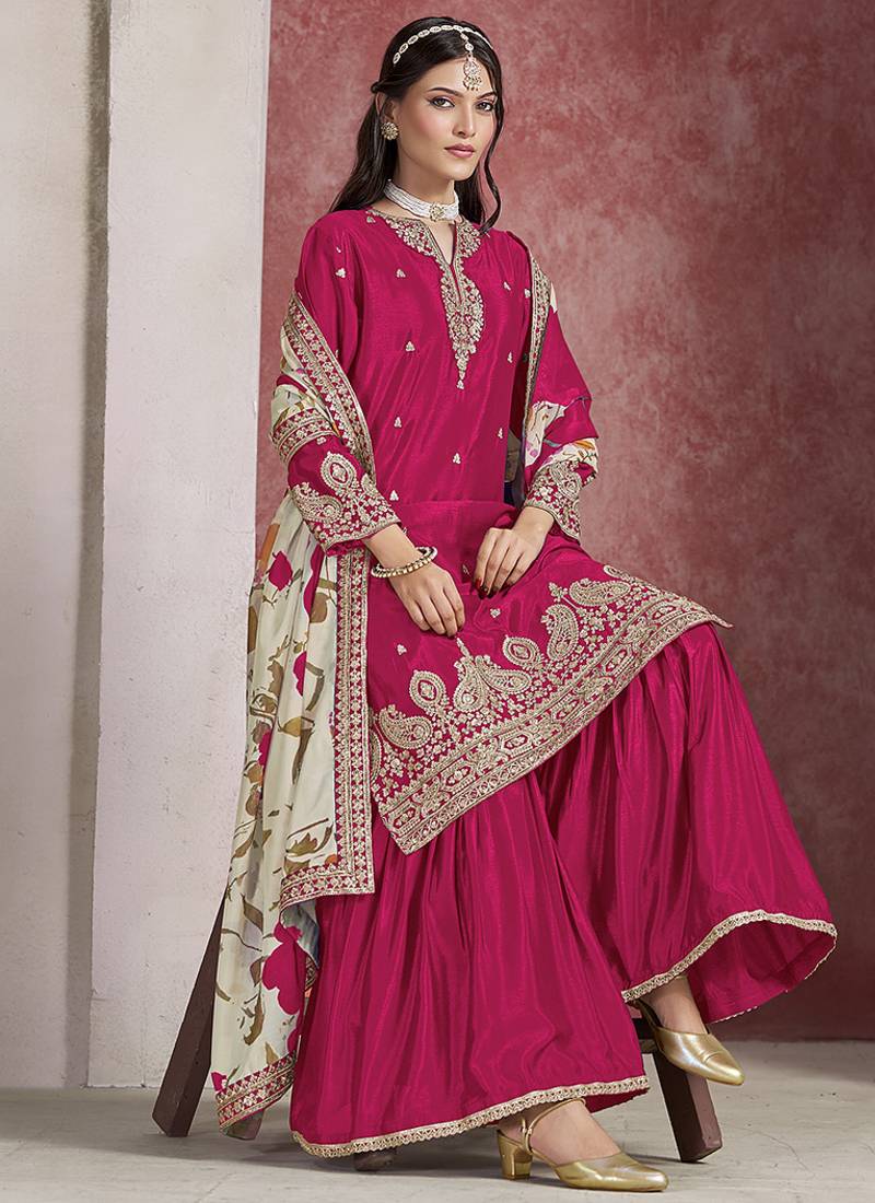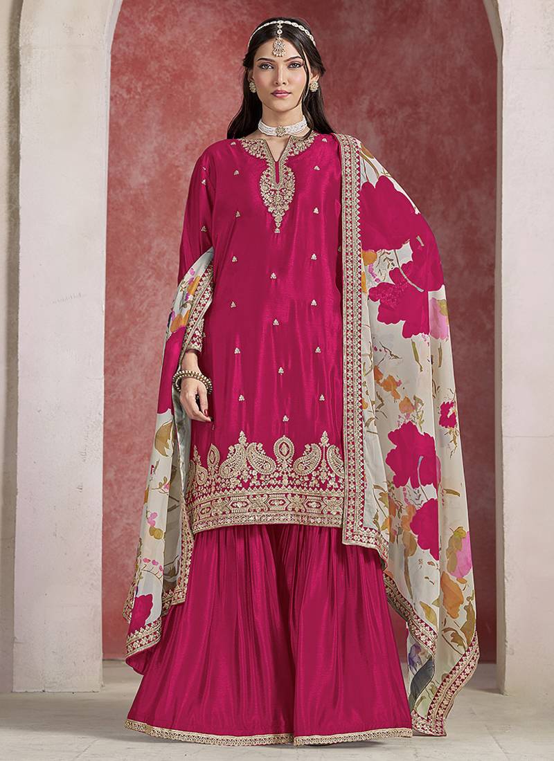 Product Name | Rani Pink Embroidered Chinon Sharara Full Stitched Free Size | |