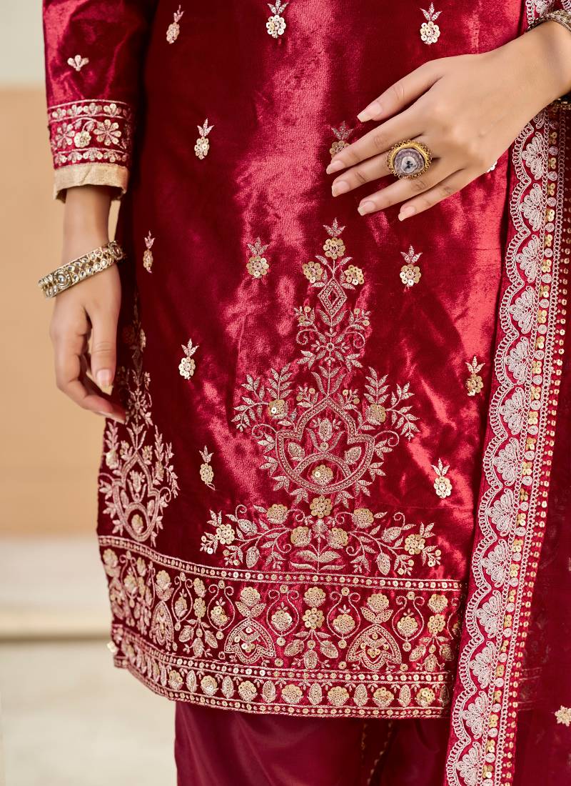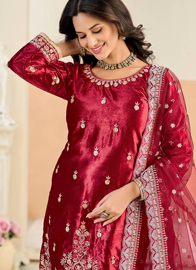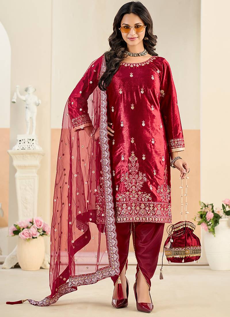 | Product Name | Red Embroidered Sequence Velvet Dhoti Style | |